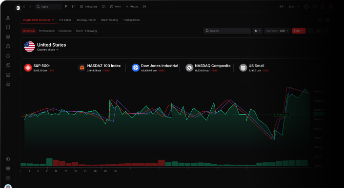 Accédez à plusieurs marchés et instruments pour diversifier vos stratégies et trader plusieurs actifs simultanément.